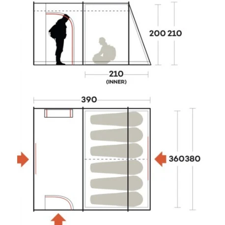 Ideale per il campeggio stanziale, ampia e munita di ampio abside anteriore.